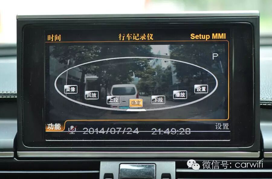 奥迪前视摄像头,挂前进挡切换前视功能,行驶时速超过15码自动切换回原车界面,